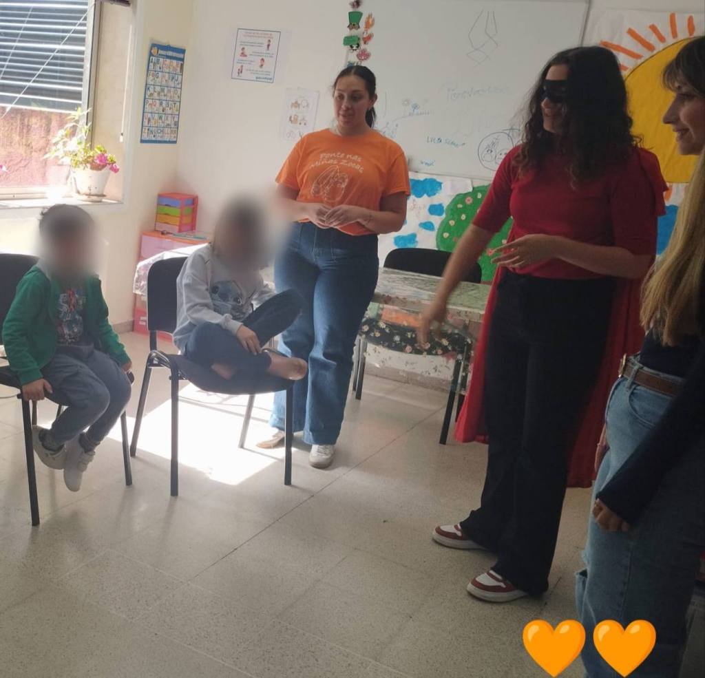 Las cuatro, estudiantes de pedagogía de la USC, desarrollaron un taller » SUPERHÉROES en EMERGENCIAS: APRENDER sin LÍMITES»,